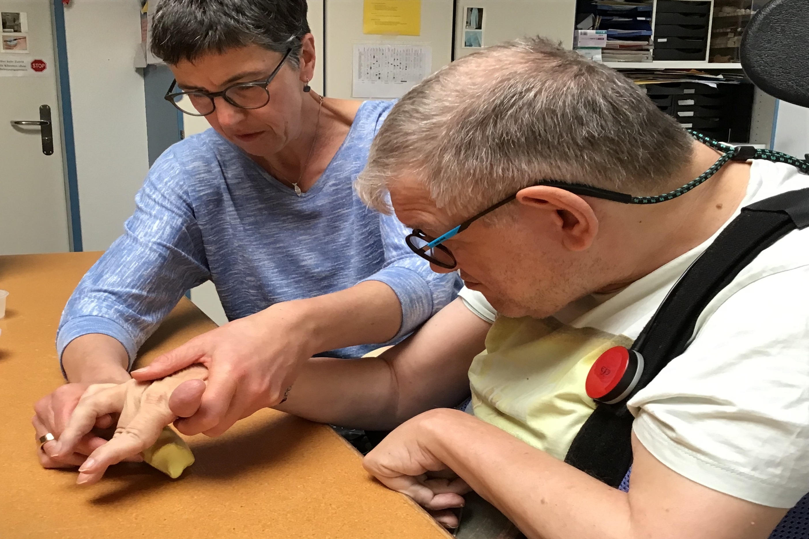 So verbessern geführte Bewegungen z.B. beim Essen, Zähneputzen, Sägen oder Zeichnen Wahrnehmungsprozesse und steigern die Funktionalität der einbezogenen Körperteile.